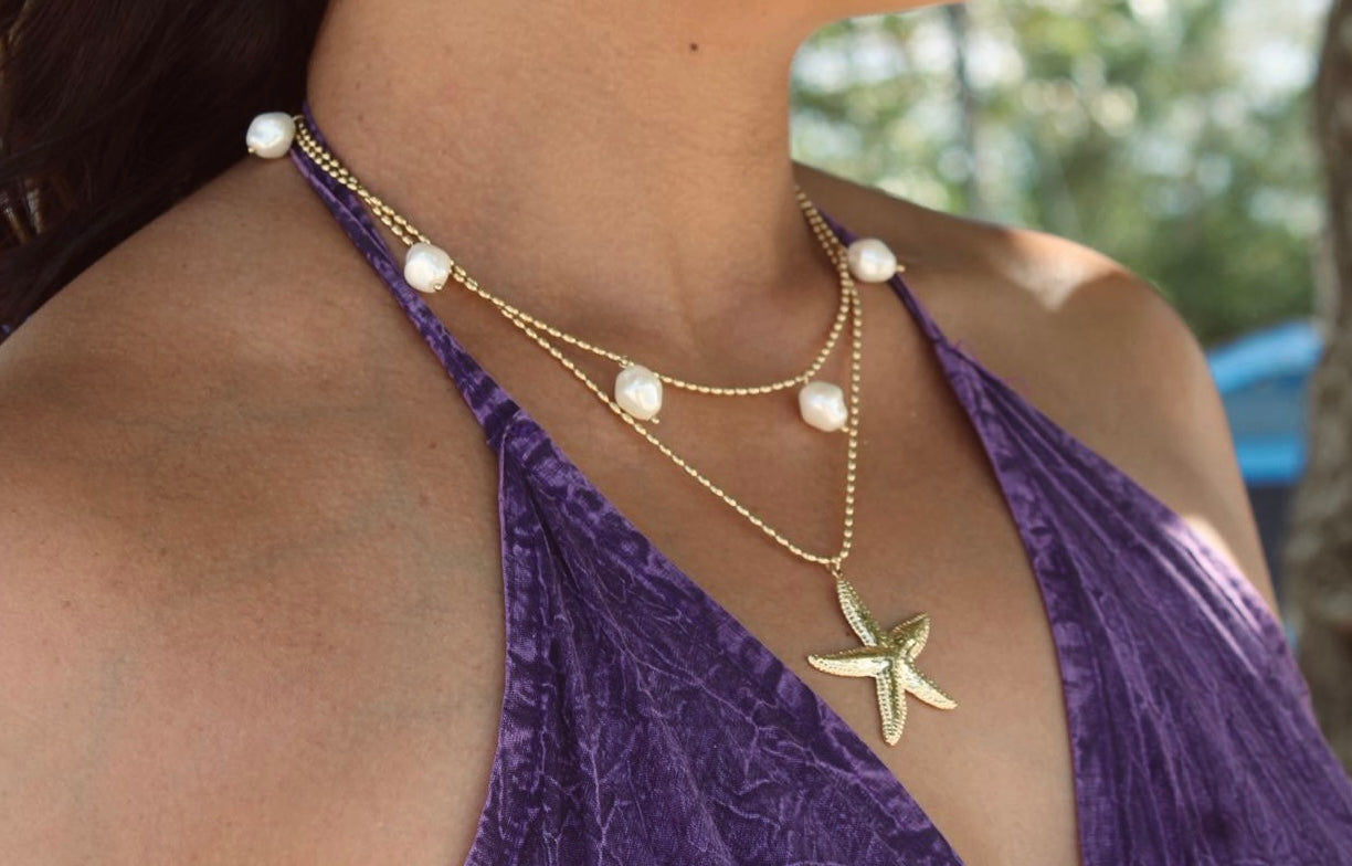 Perla es un collar delicado que celebra la pureza y la elegancia natural del mar. Cada perla simboliza belleza, protección y serenidad, convirtiendo esta pieza en un amuleto de sofisticación y calma. Un detalle luminoso y atemporal, pensado para acompañarte con gracia en cada momento!